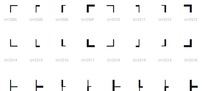 - 얇은 선 - 굵은 선 꼭짓점 : ┍ ┎ ┑┒┕ ┖ ┙ ┚